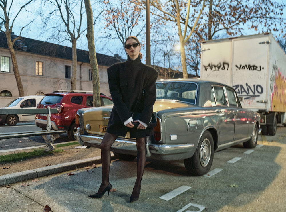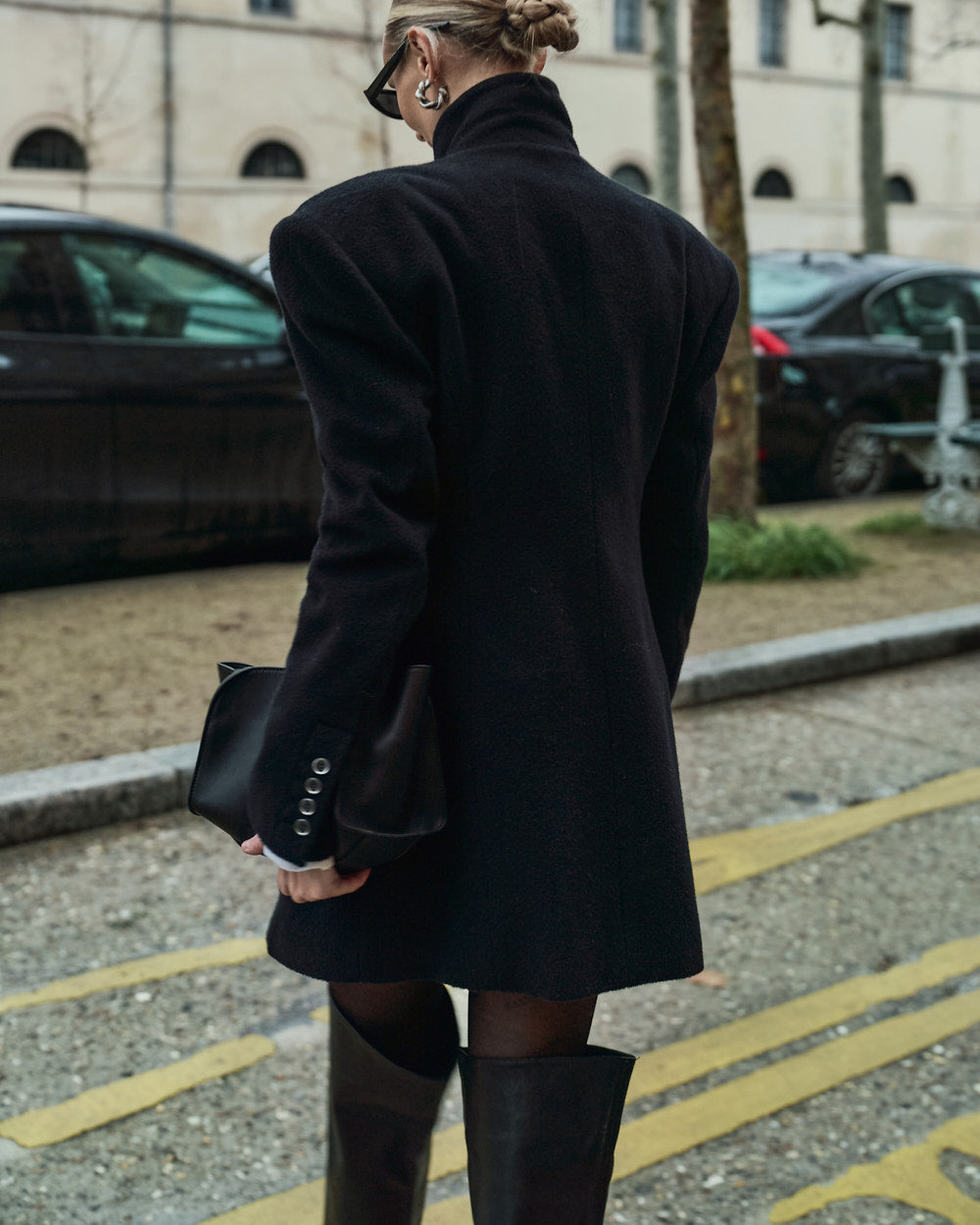 Model is 174cm tall and wearing size S in BLACK.