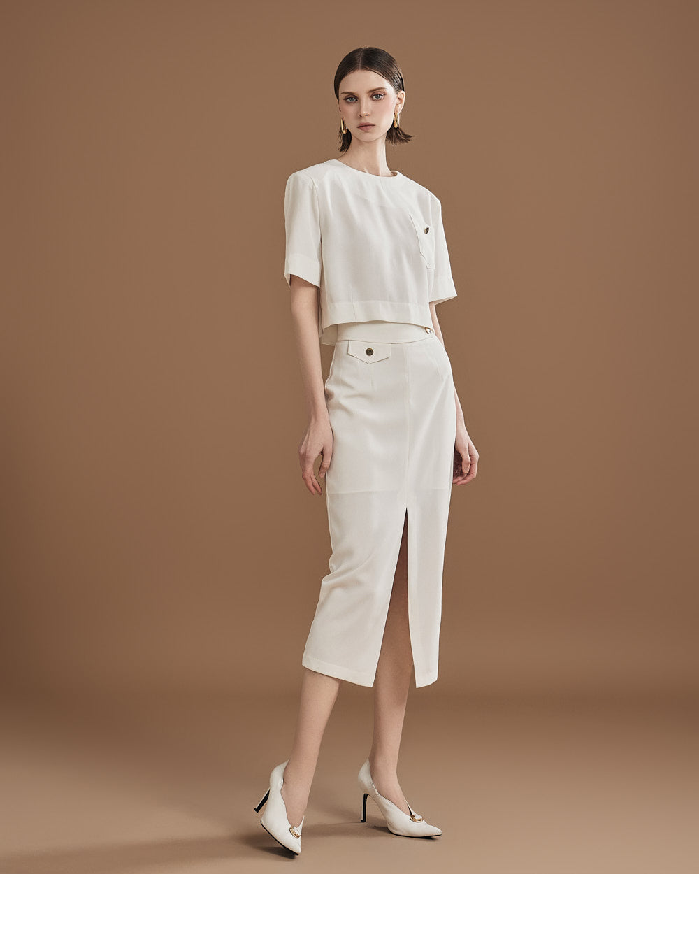 这条裙子本身就可以打造出时尚的服装,并且可以与各种上衣完美搭配。