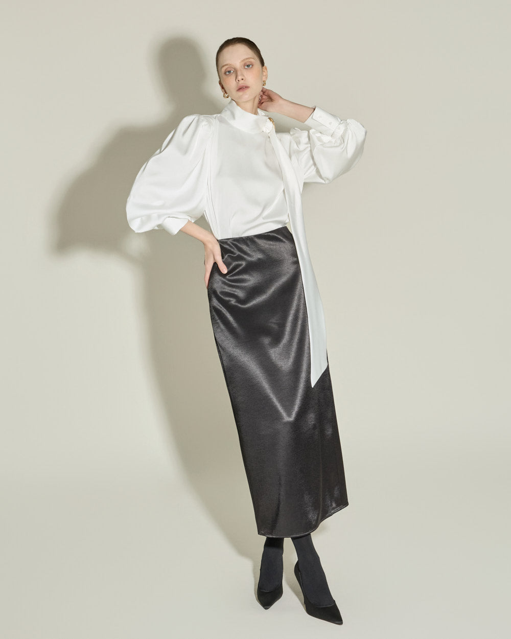 and its clean H-line silhouette and long length complete a sophisticated look.