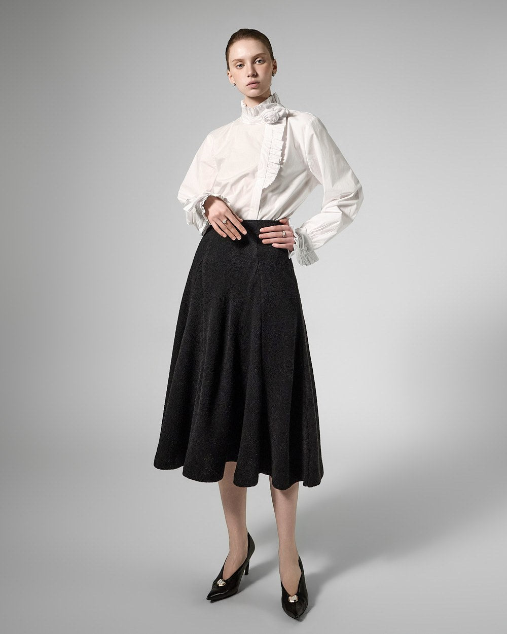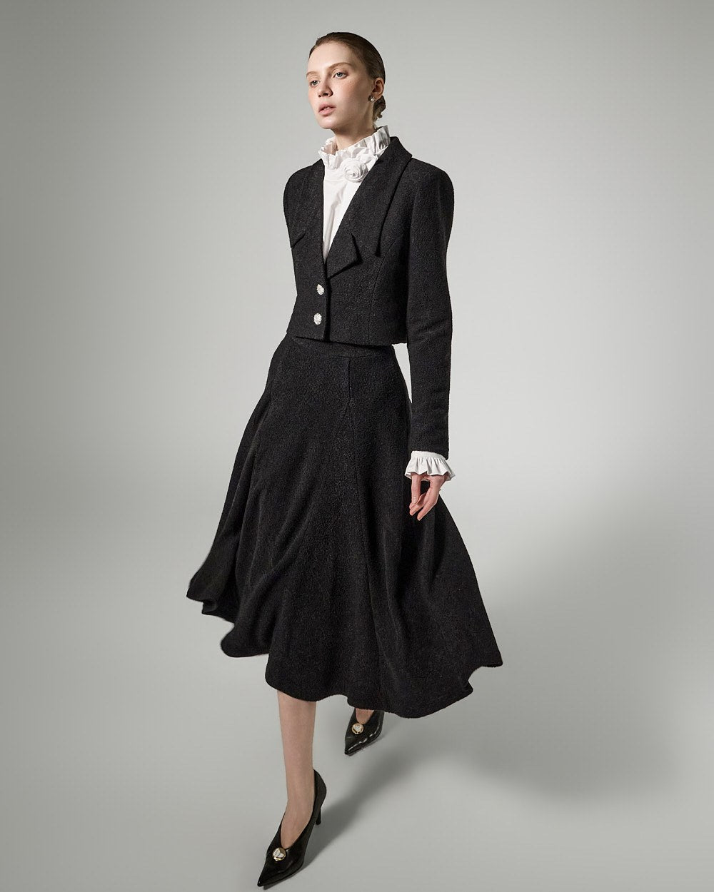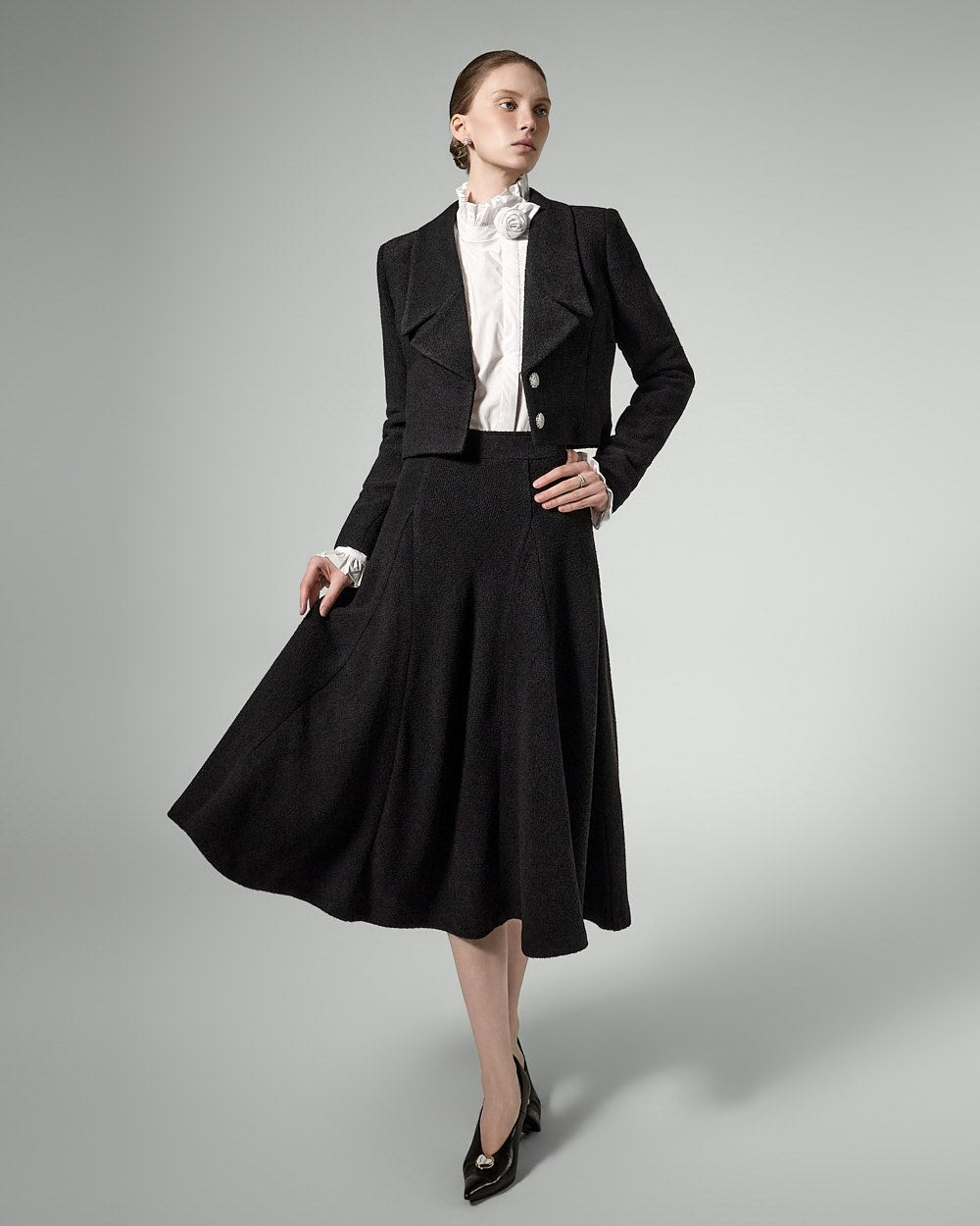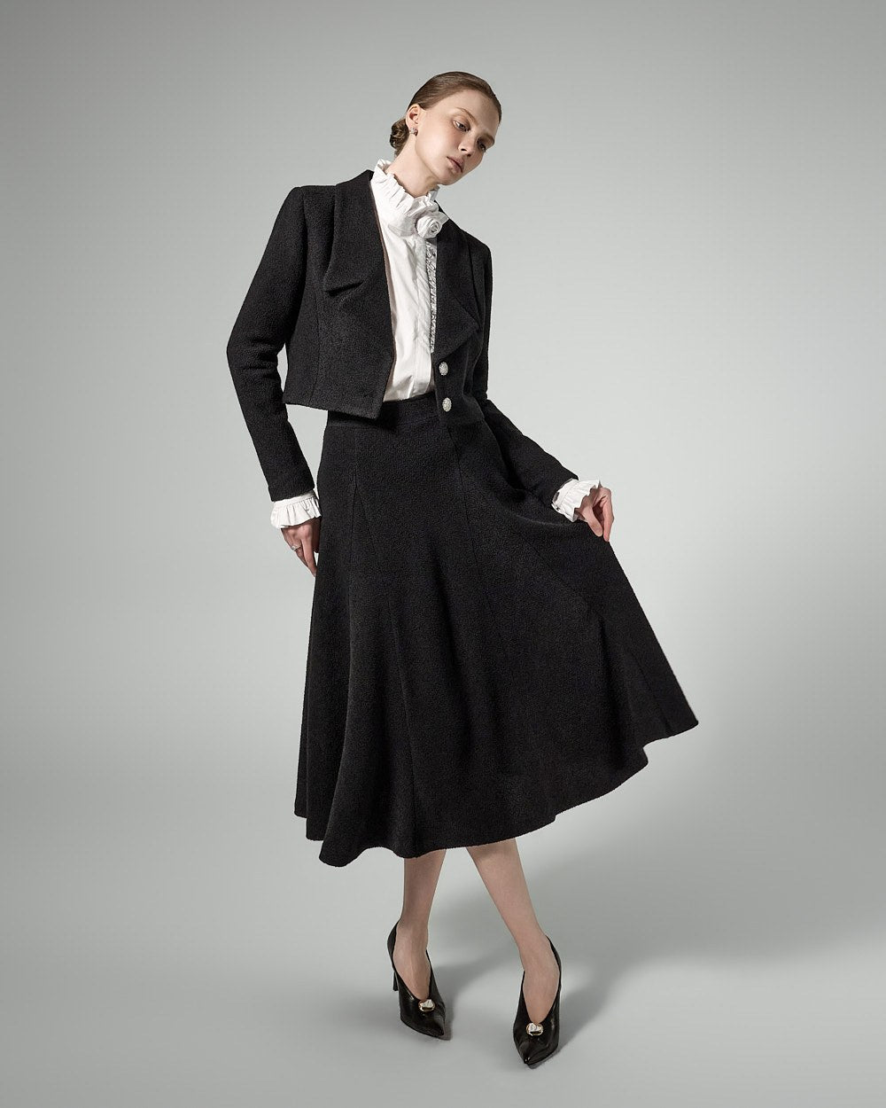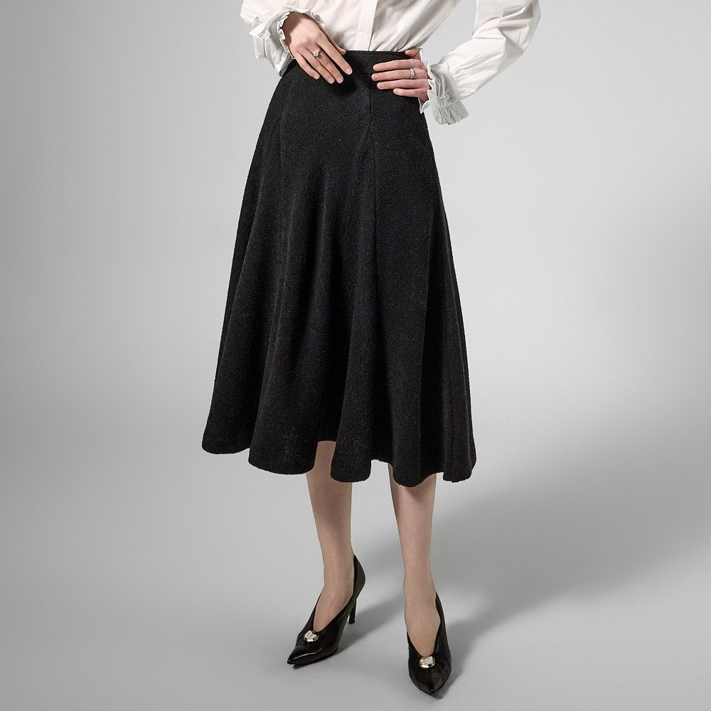 This tweed full skirt exudes a classic feminine vibe.