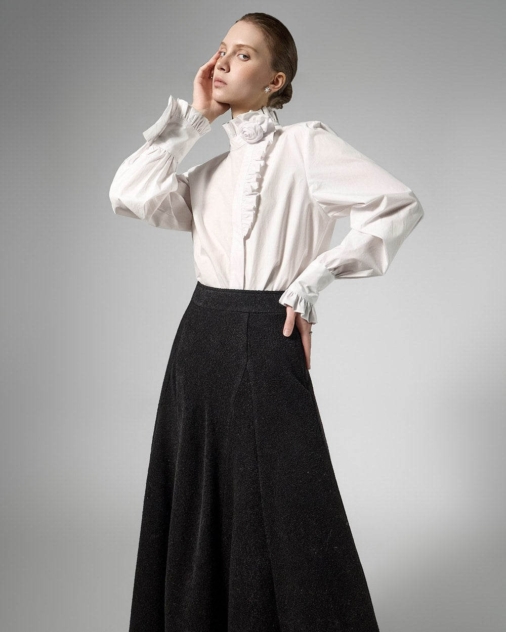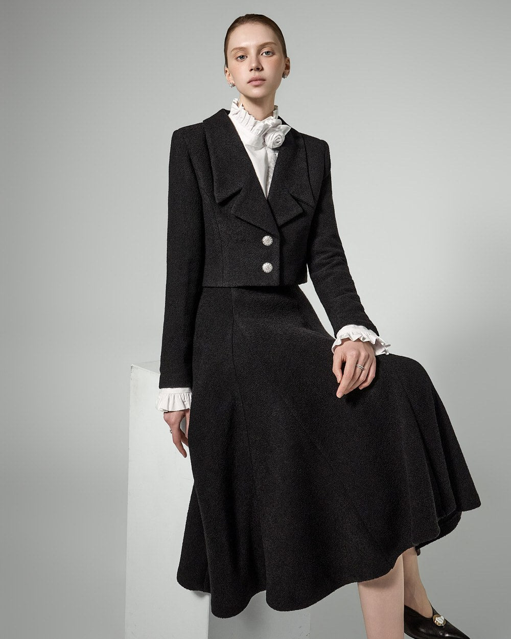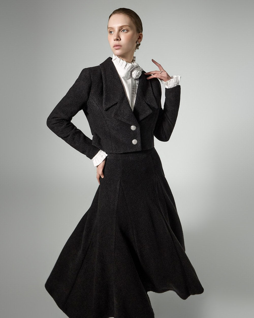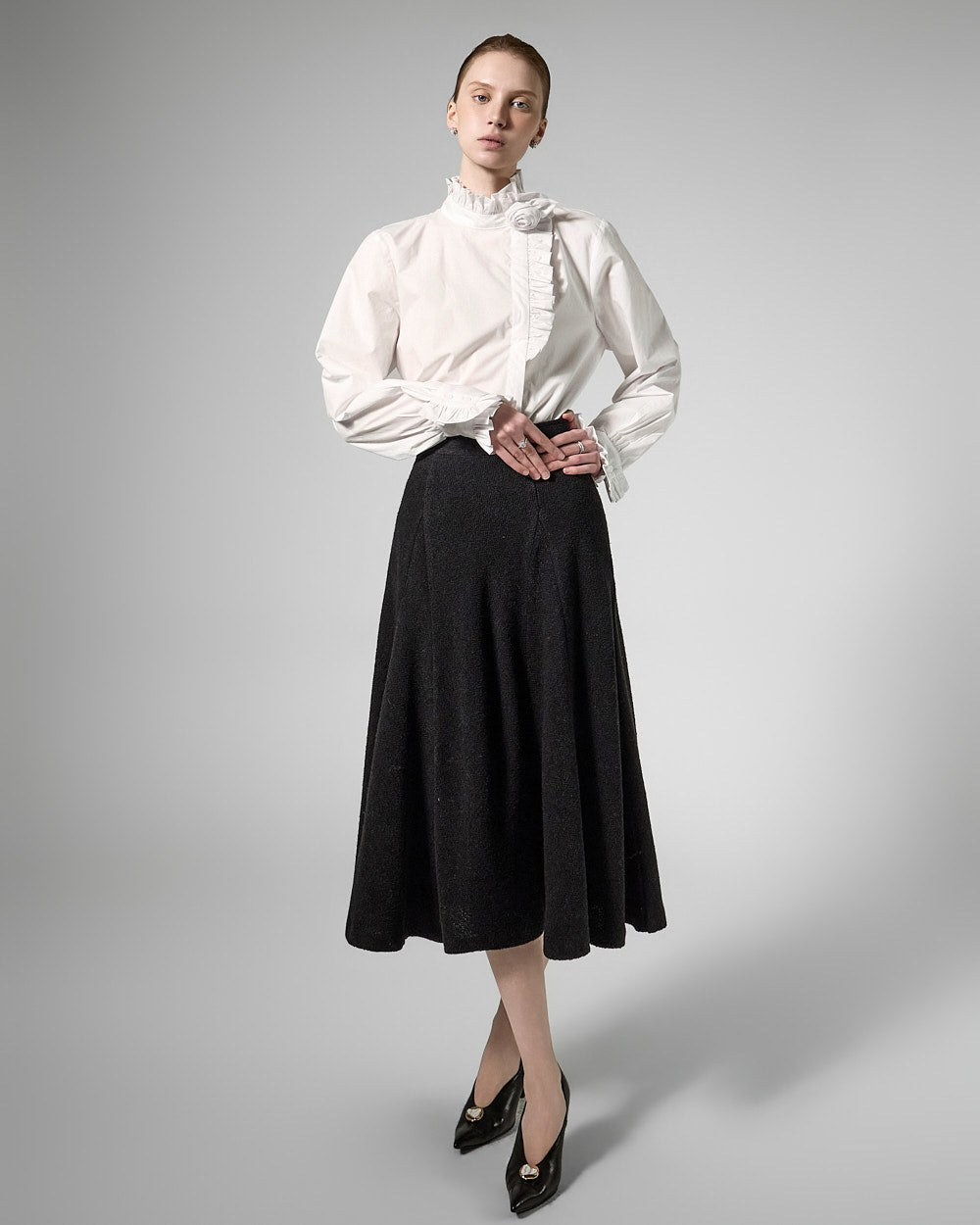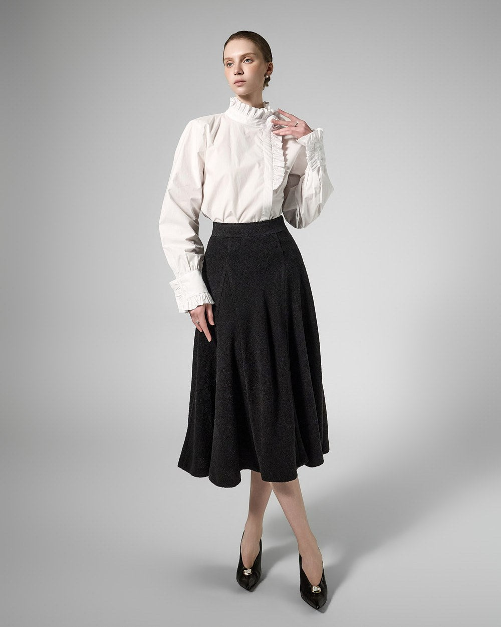 This tweed full skirt exudes a classic feminine vibe.