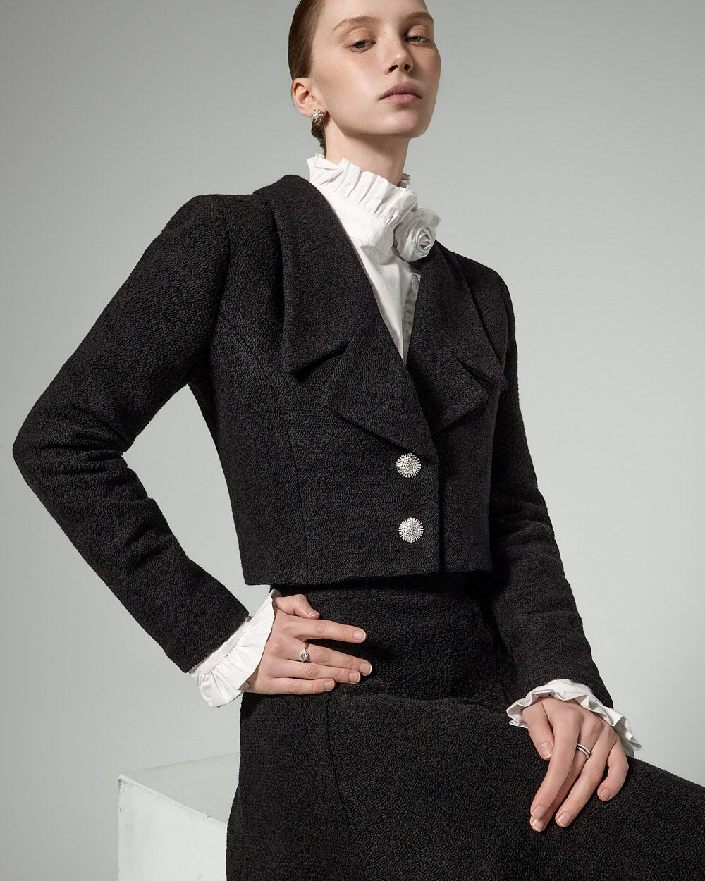 Model is 174cm tall and wearing size S in BLACK.