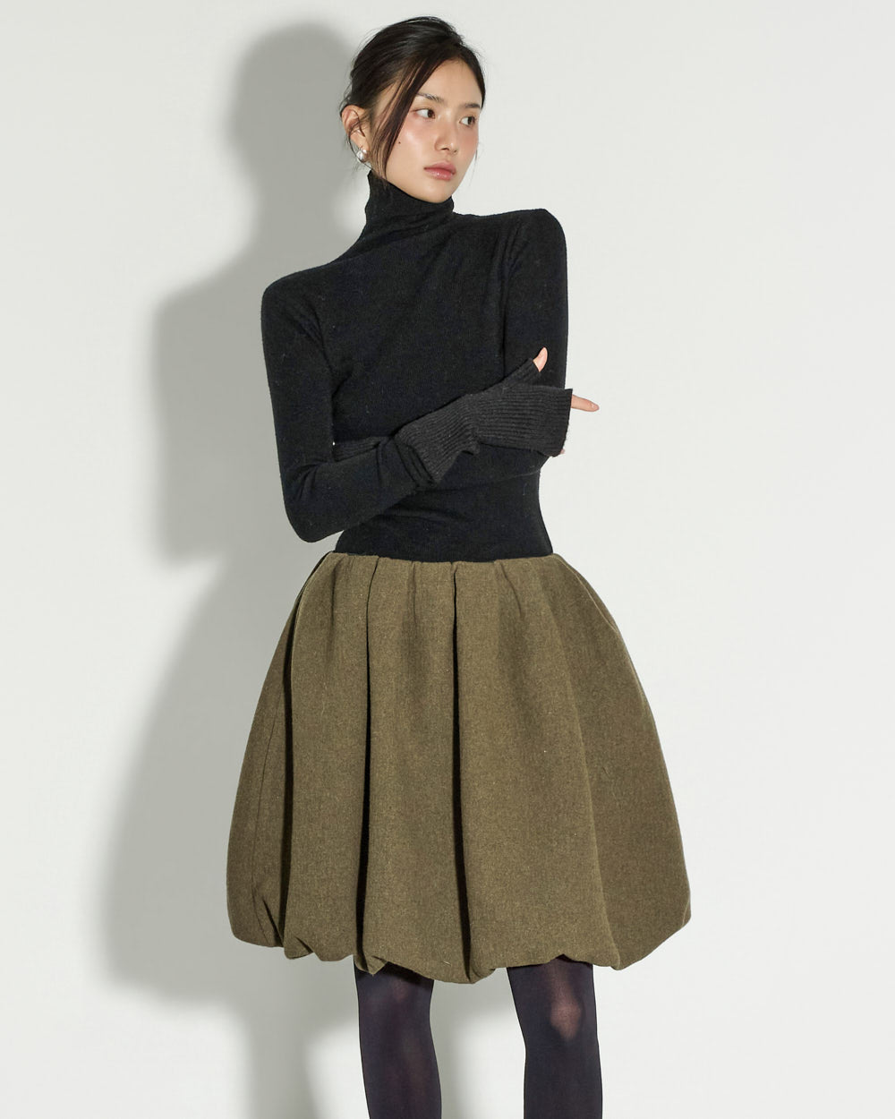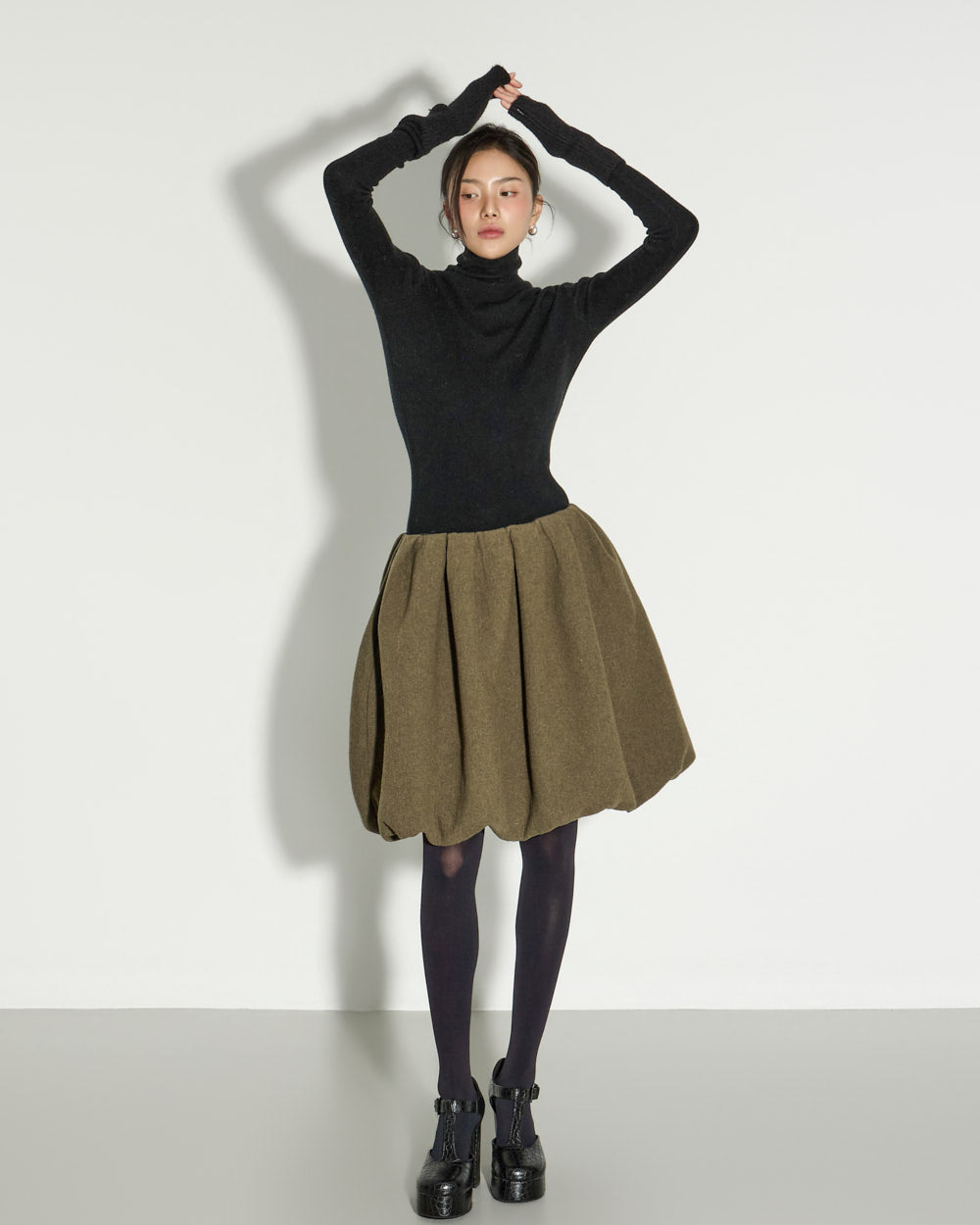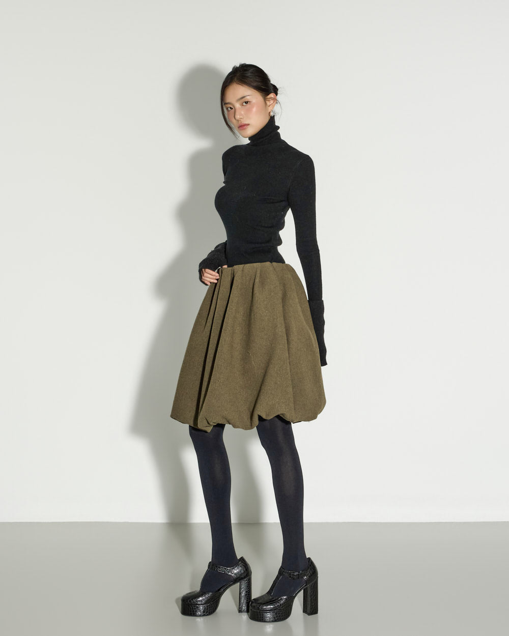 The elasticated waistband and side zipper closure ensure a secure fit.