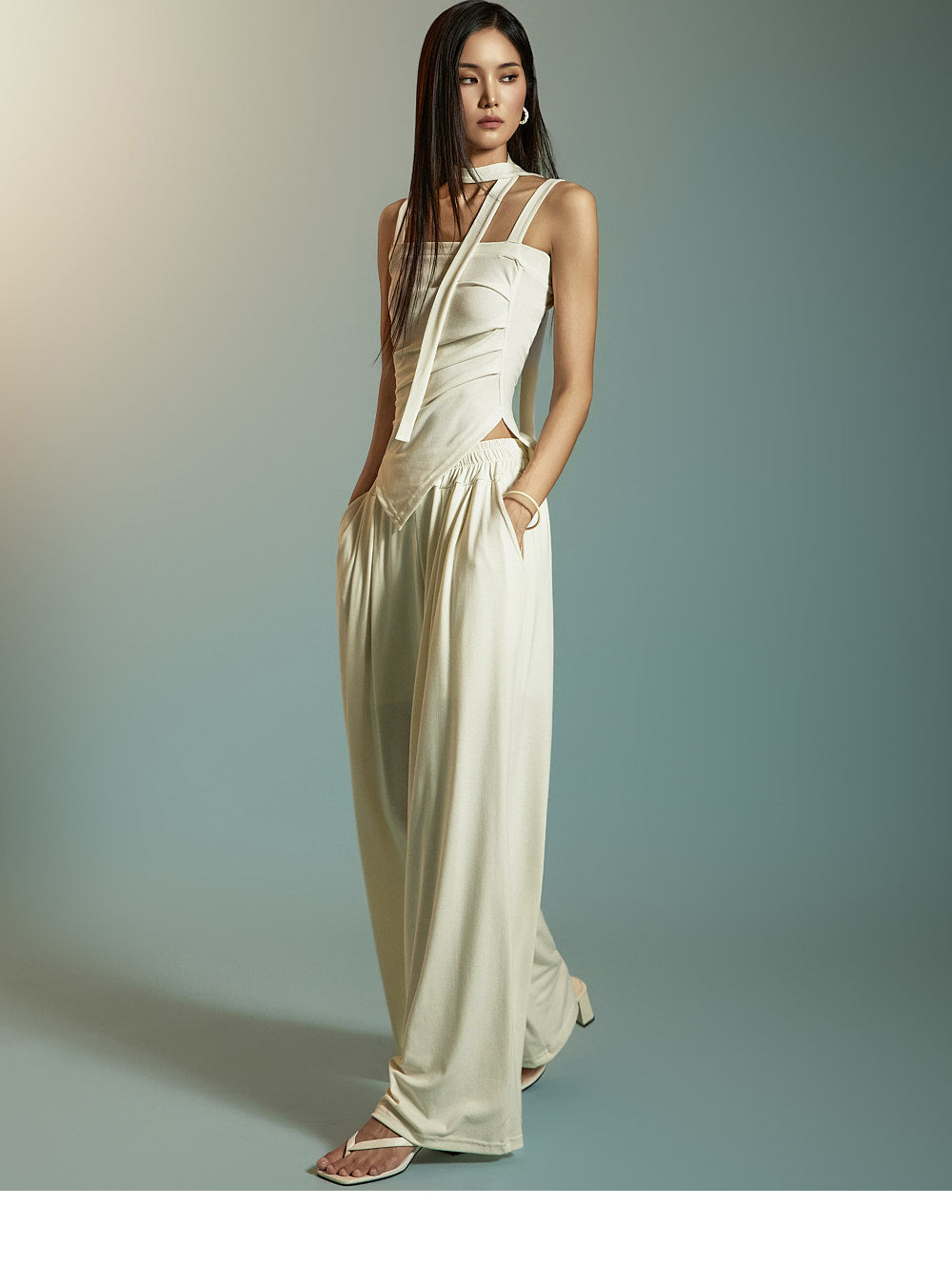 无袖上衣和宽松裤子,简洁、有条理的轮廓既舒适又时尚。