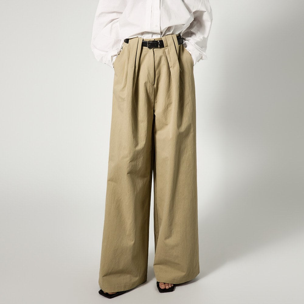 The pants feature a wide-leg fit,