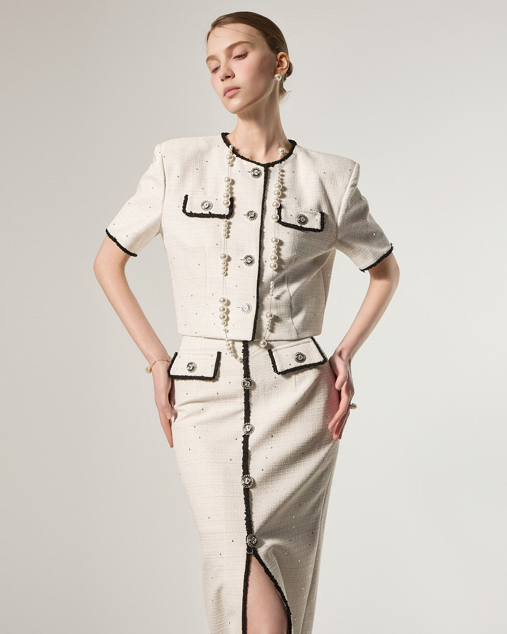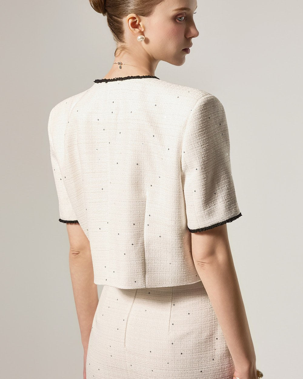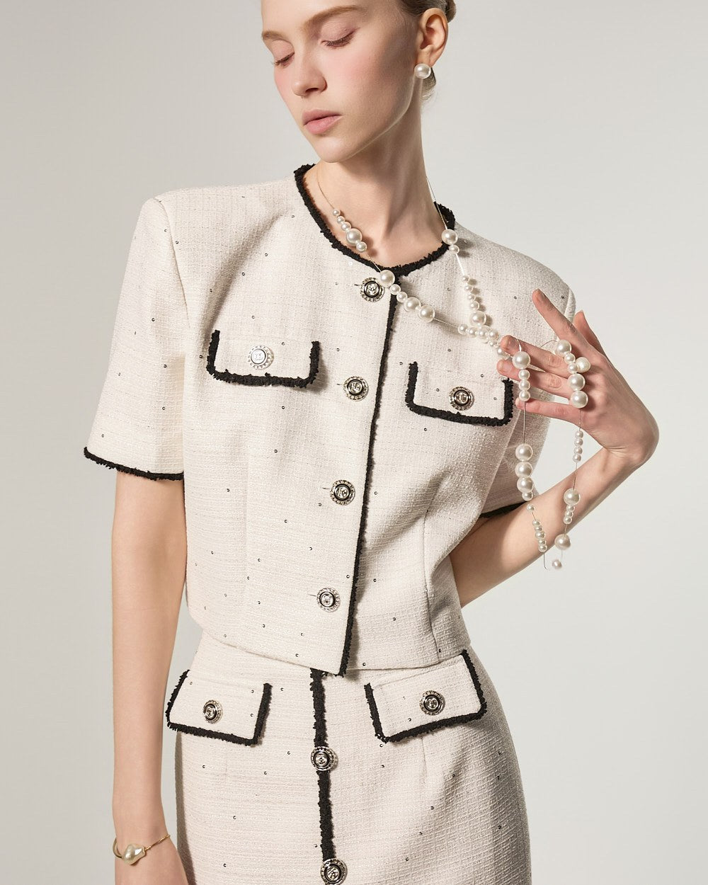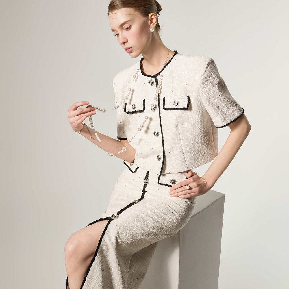 这是一款充满优雅气质的粗花呢套装。