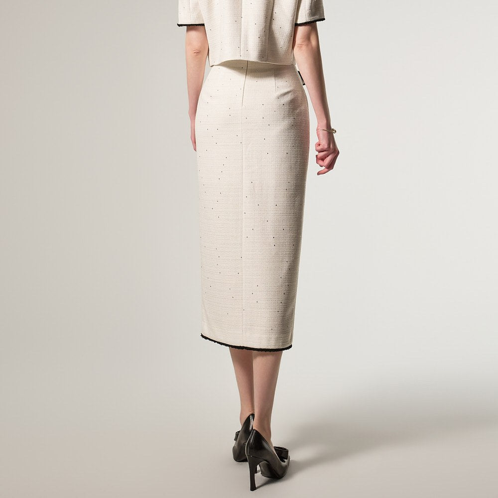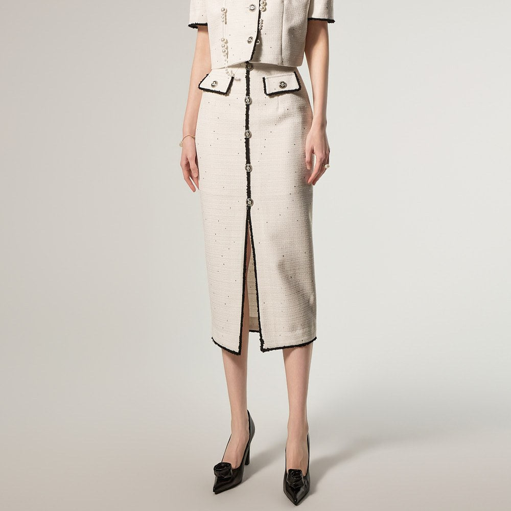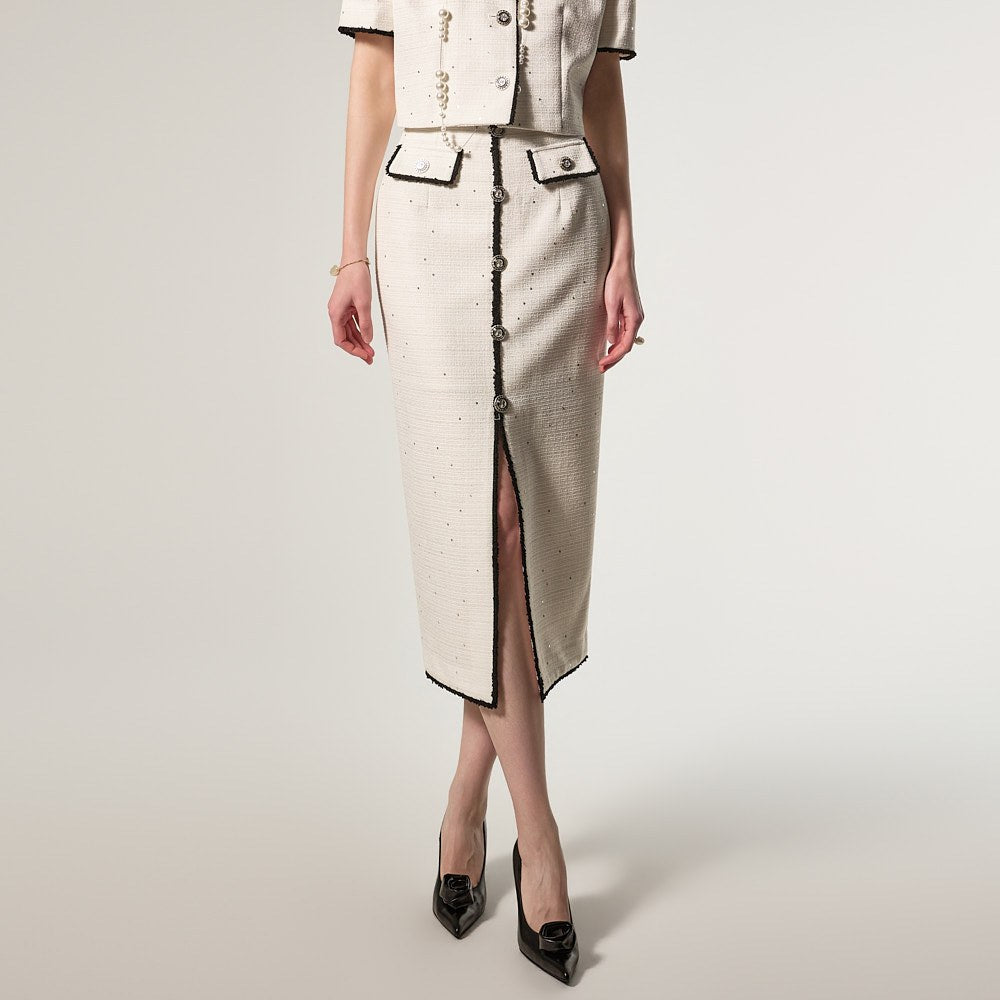 半身裙采用前开衩设计,