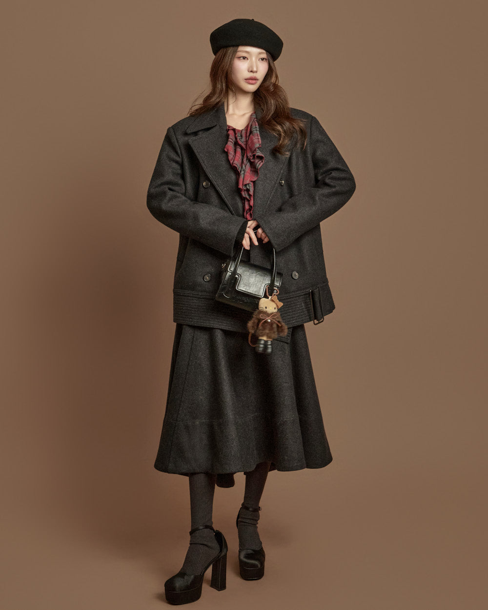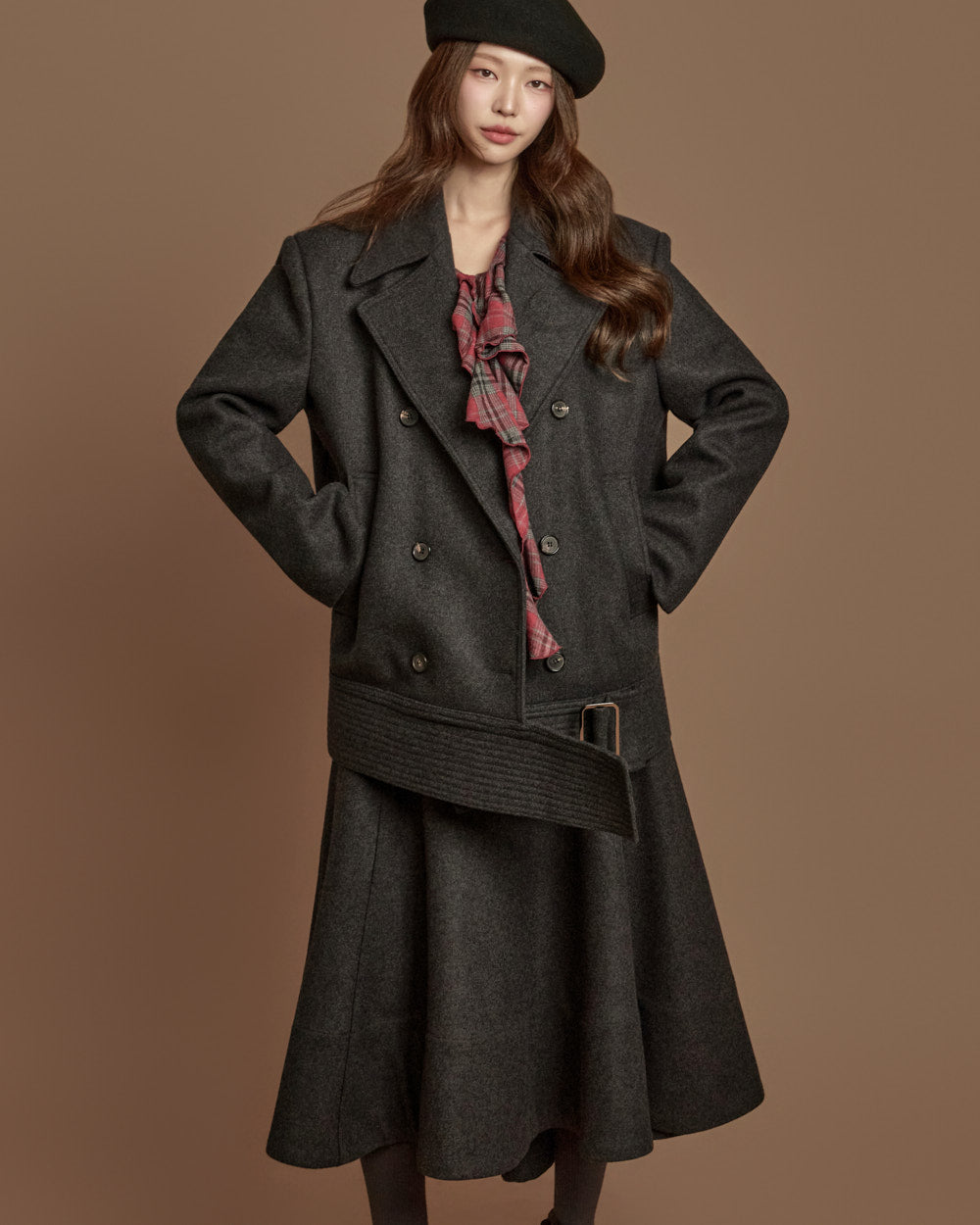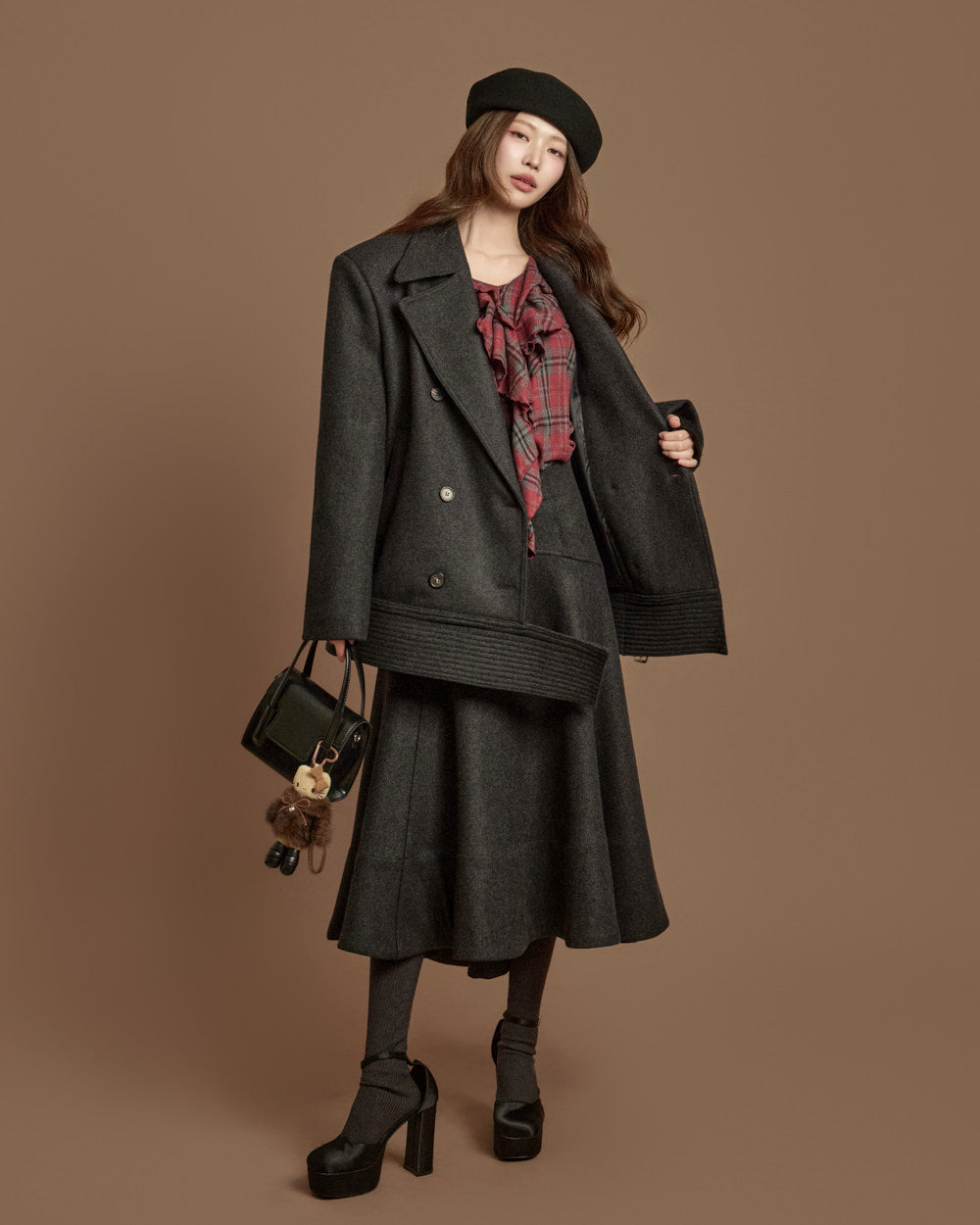 The 171cm model is wearing a size ONE coat, a size S skirt,