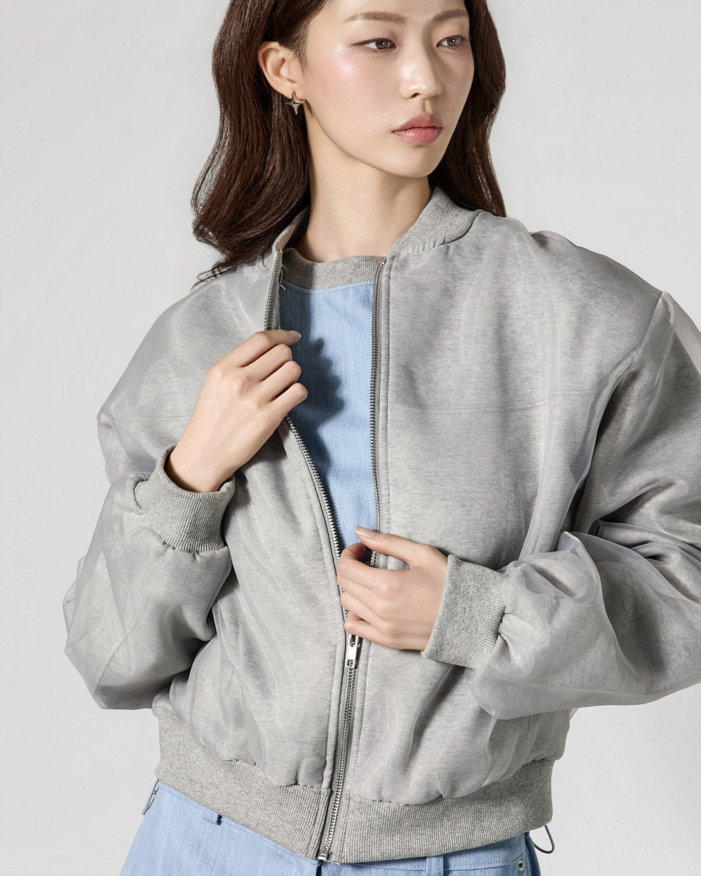 A 171cm model is wearing Size ONE in GRAY.