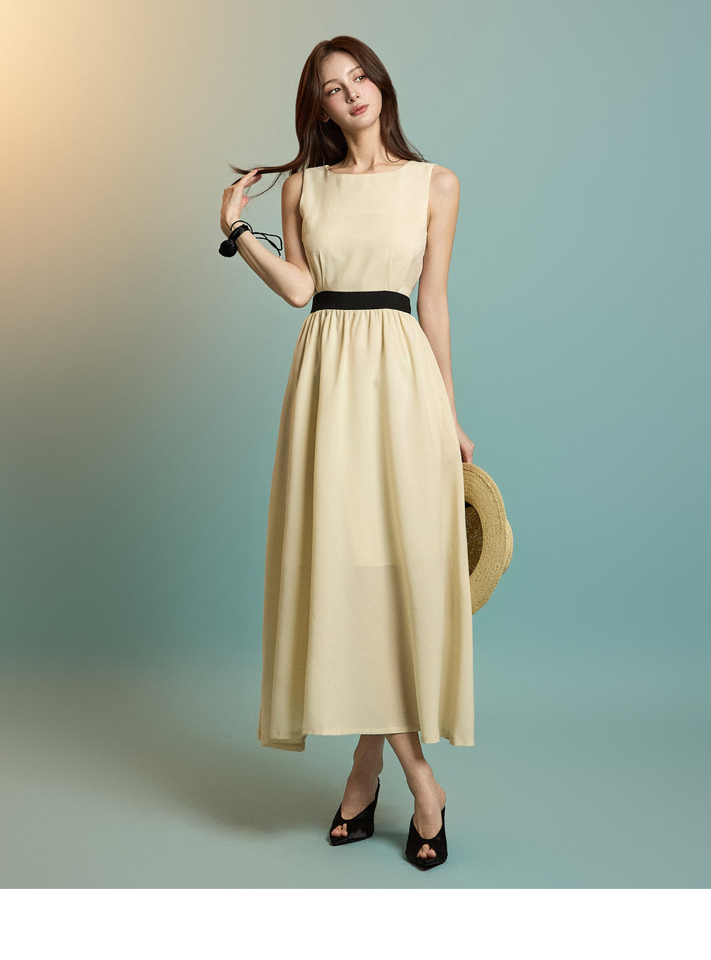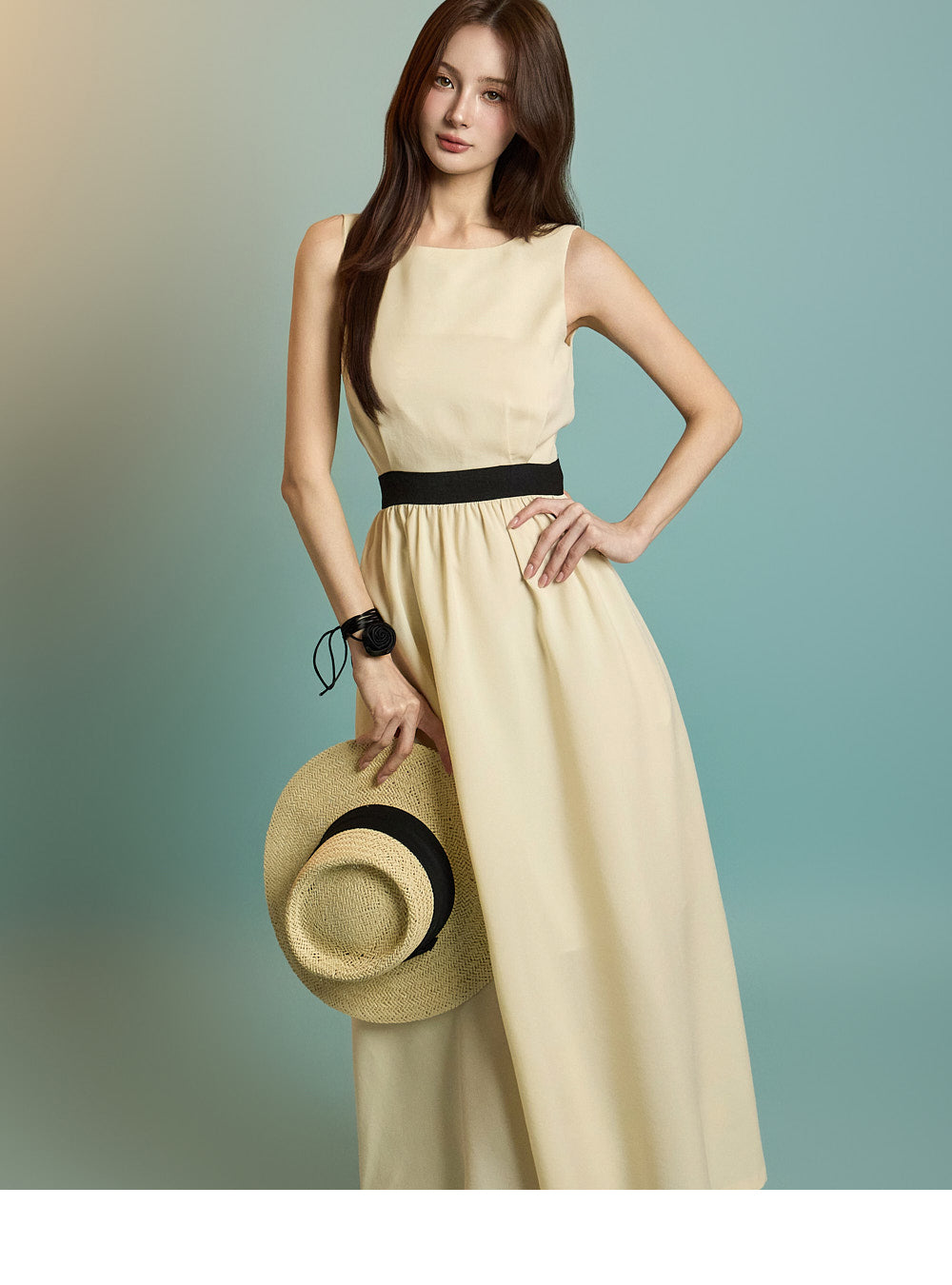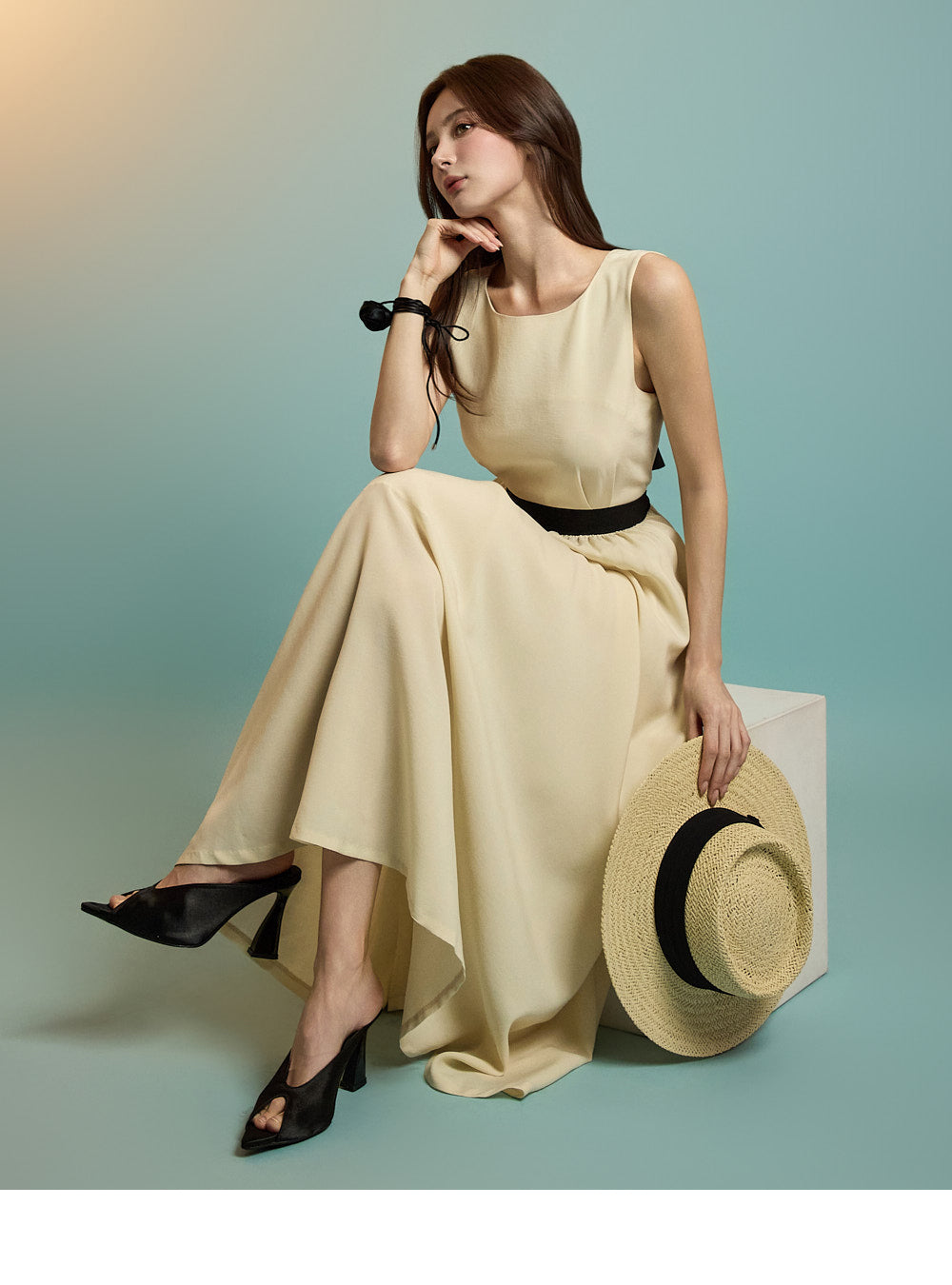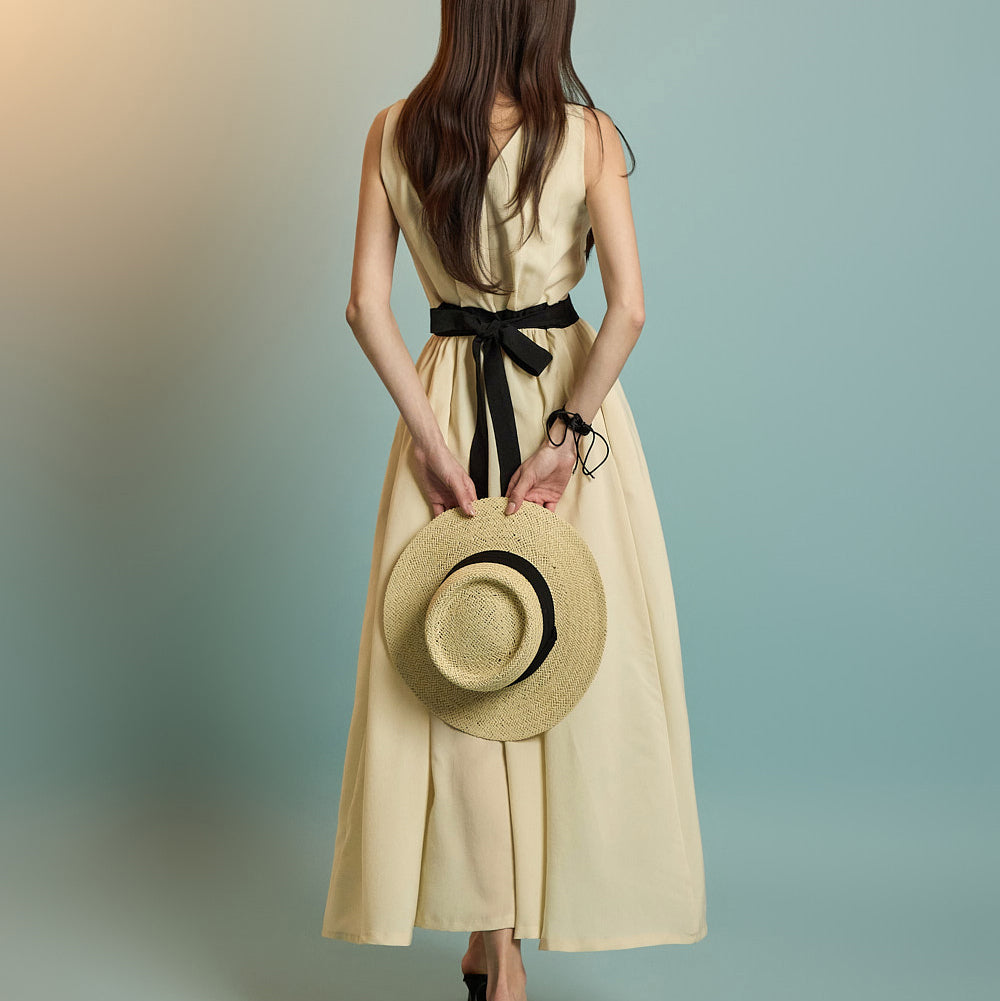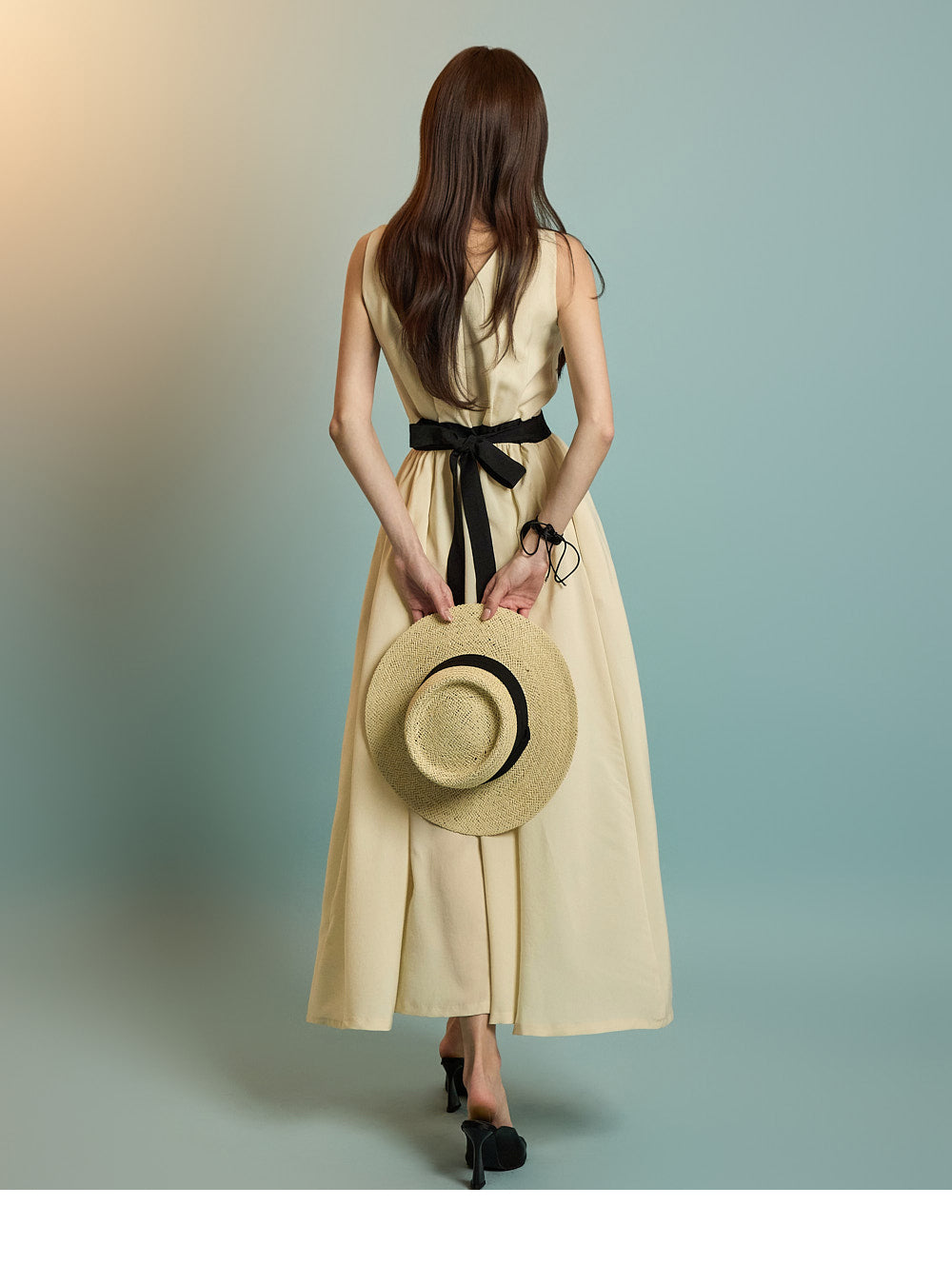 无袖设计搭配喇叭形 A 字廓形,营造出优雅