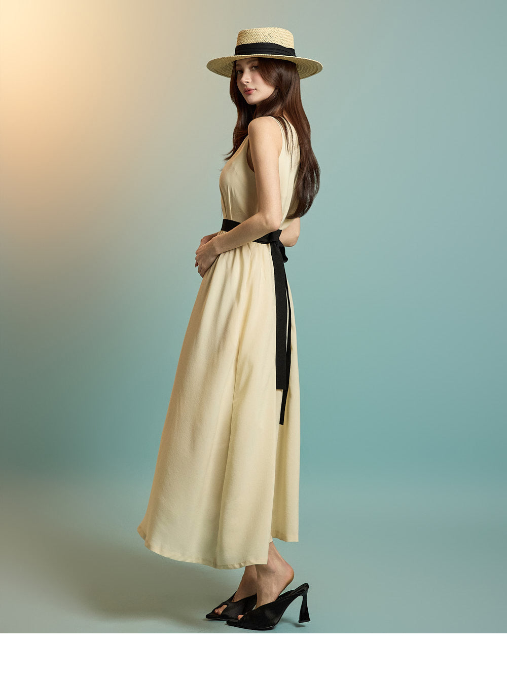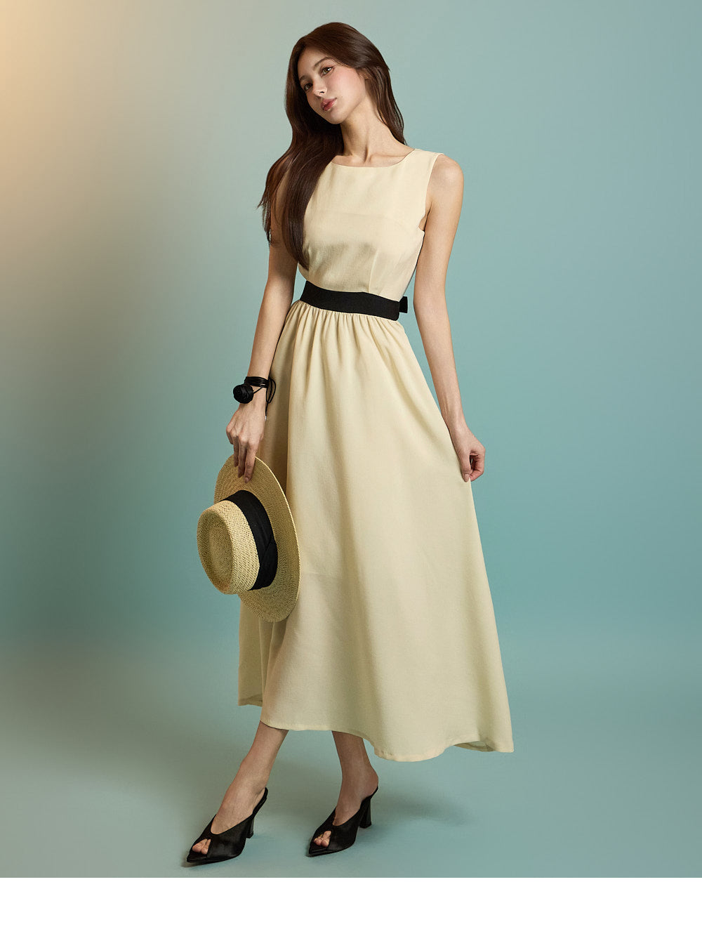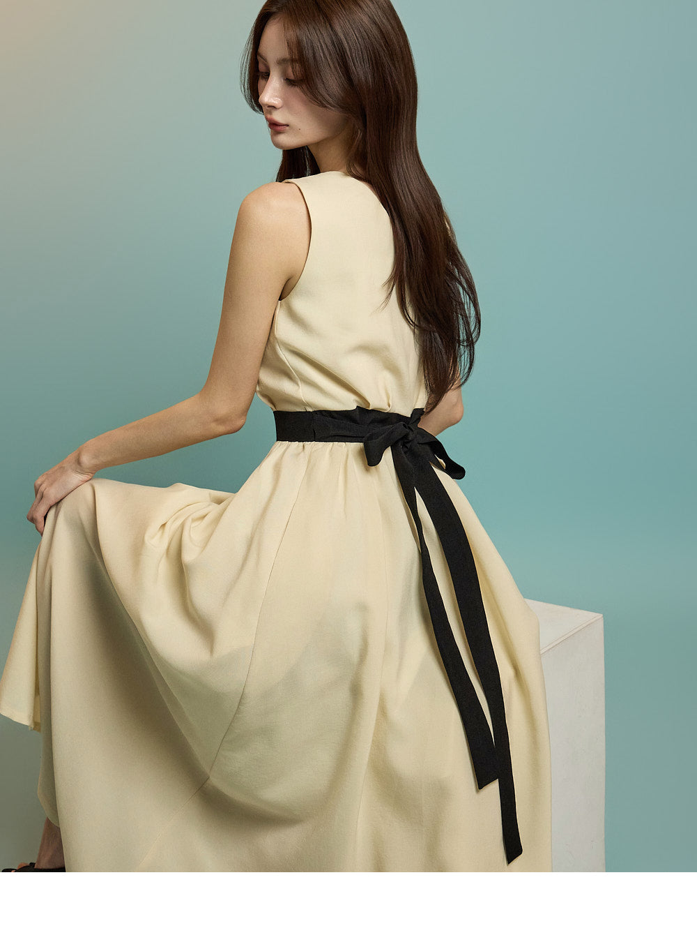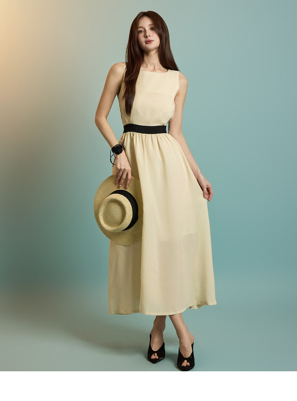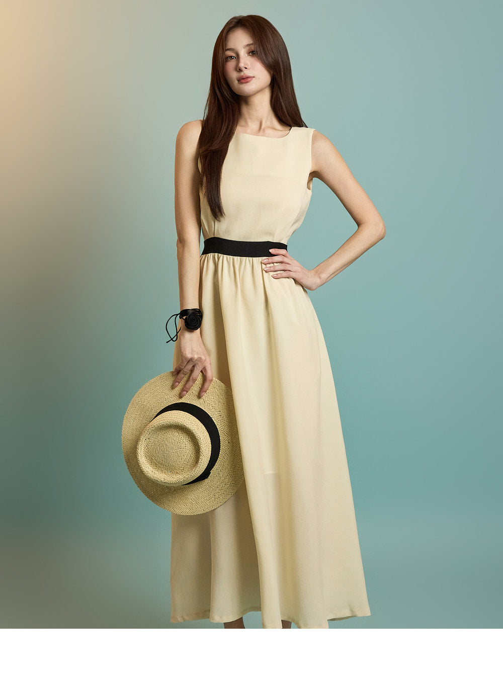 无袖设计搭配喇叭形 A 字廓形,营造出优雅
