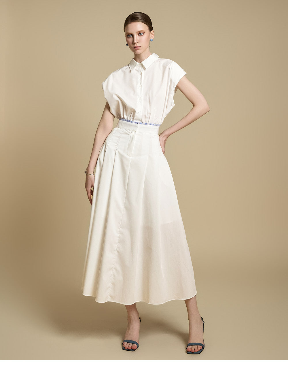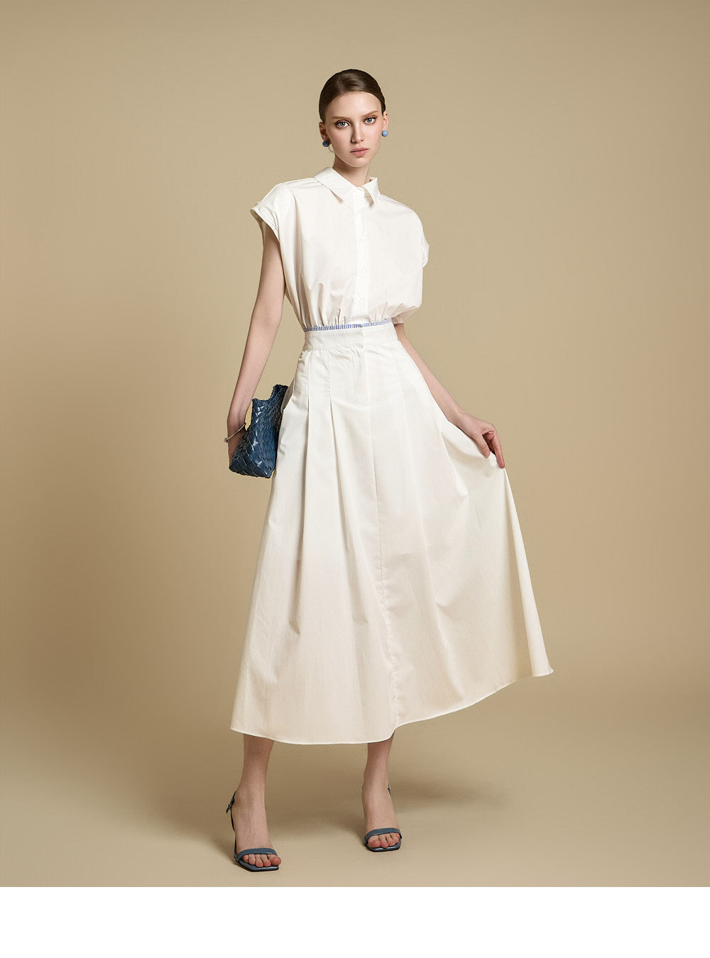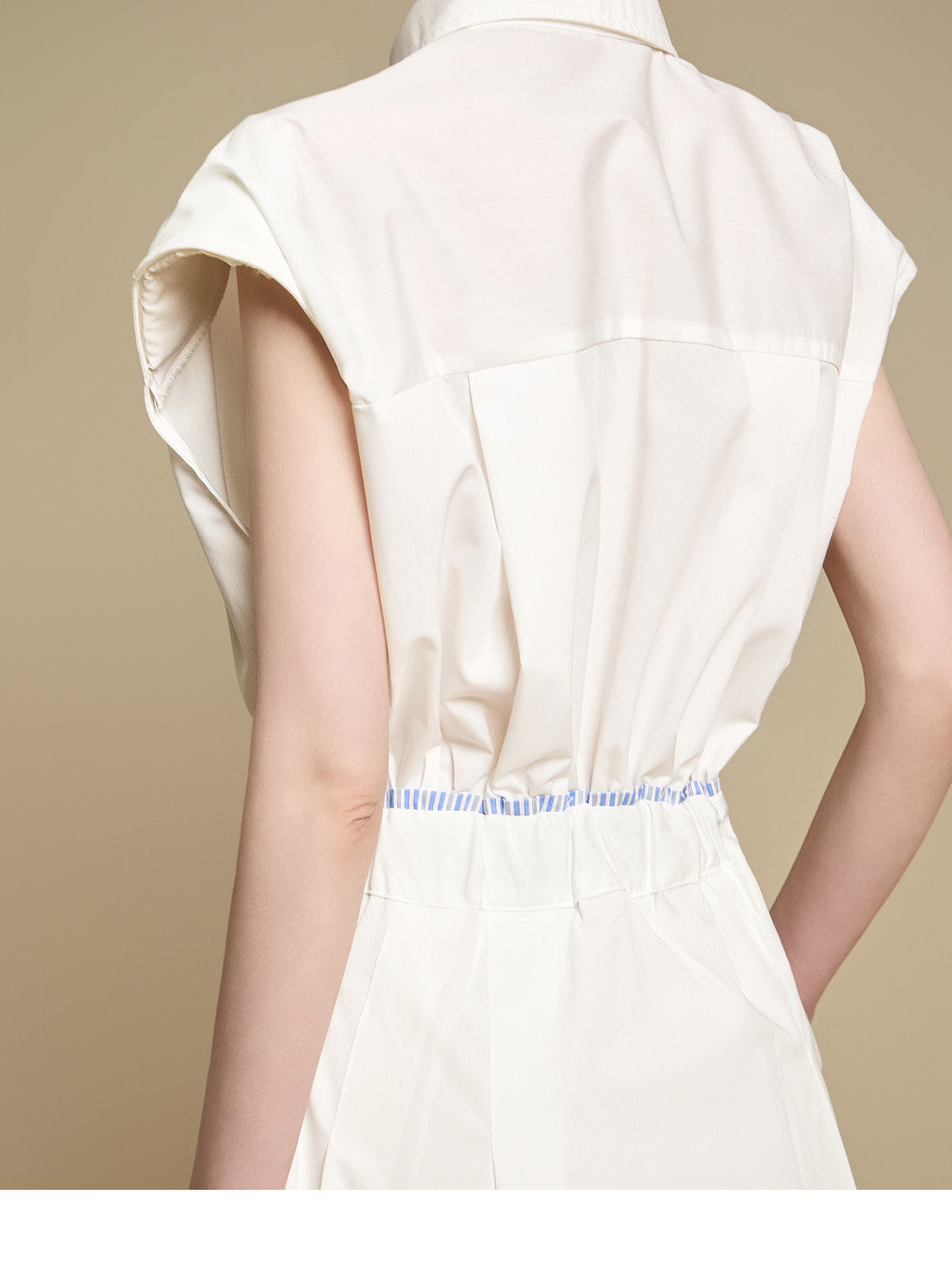 采用修身剪裁和无袖设计,营造出轻松而又充满女性气质的外观。
